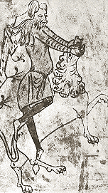 The pictures on both sides show details from a 13th century book (left), and an even earlier one (right), which clearly remind us of classic Temperance and Fortitude trumps, respectively.