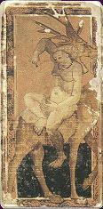 The Tarot of Charles VI has no heraldic reference; if these cards had really been made for a king, his coat of arms would appear on many subjects, but this theory has long since been rejected. Although the iconography of most of its trumps is in line with those of the other three tarots of this group, the attention of playing card historians was drawn by a few subjects, among which Love, whose composition may have been inspired by a famous set of frescoes in Palazzo Schifanoia (Ferrara). The paintings had been commissioned by Borso d'Este to a local artist, Francesco del Cossa, around 1470, and for some time represented a source of inspiration for many other painters, particularly in north-eastern Italy. If this interpretation is correct, the tarot could have been made in the same years as the aforesaid Tarot of Alessandro Sforza, i.e. not long after the frescoes had been finished, while they were still stirring the creativity of local artists; among them, probably, was also the author of the so-called Tarot of Mantegna (see the relevant page). |