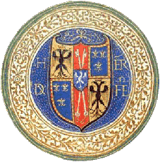 The House of Este was a princely family whose rule over Ferrara lasted from the mid 13th to the late 16th centuries. They originally came from Lombardy, as a branch of the Obertenghi, who had held Milan and Genua in the 10th century. About one hundred years later, the family had moved to north-eastern Italy, where they owned several estates; among them was a castle located near Padua, in the town called Este after which, around the mid 11th century, the family changed its name. The founder of this new dinasty was Alberto Azzo II, margrave of Este. His descendants never had great political importance in Ferrara, until in 1240 Azzo VII, an ally of the Guelf league that backed the pope against the emperor, acquired major authority. His heir, Obizzo II (reigned 1264-93), became perpetual lord of Ferrara. |